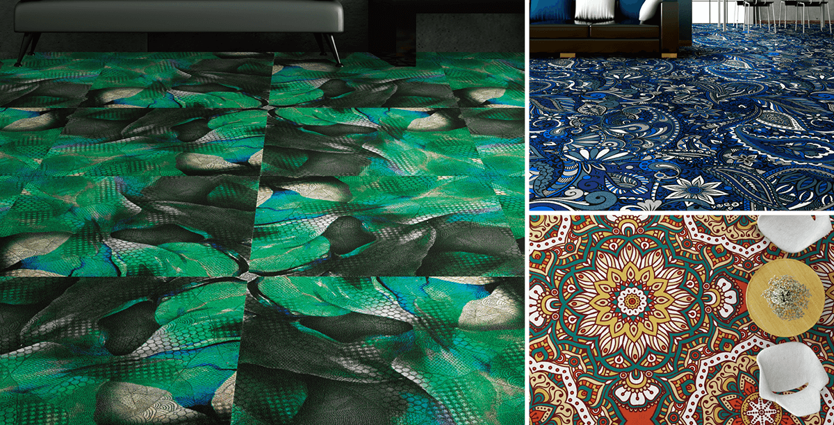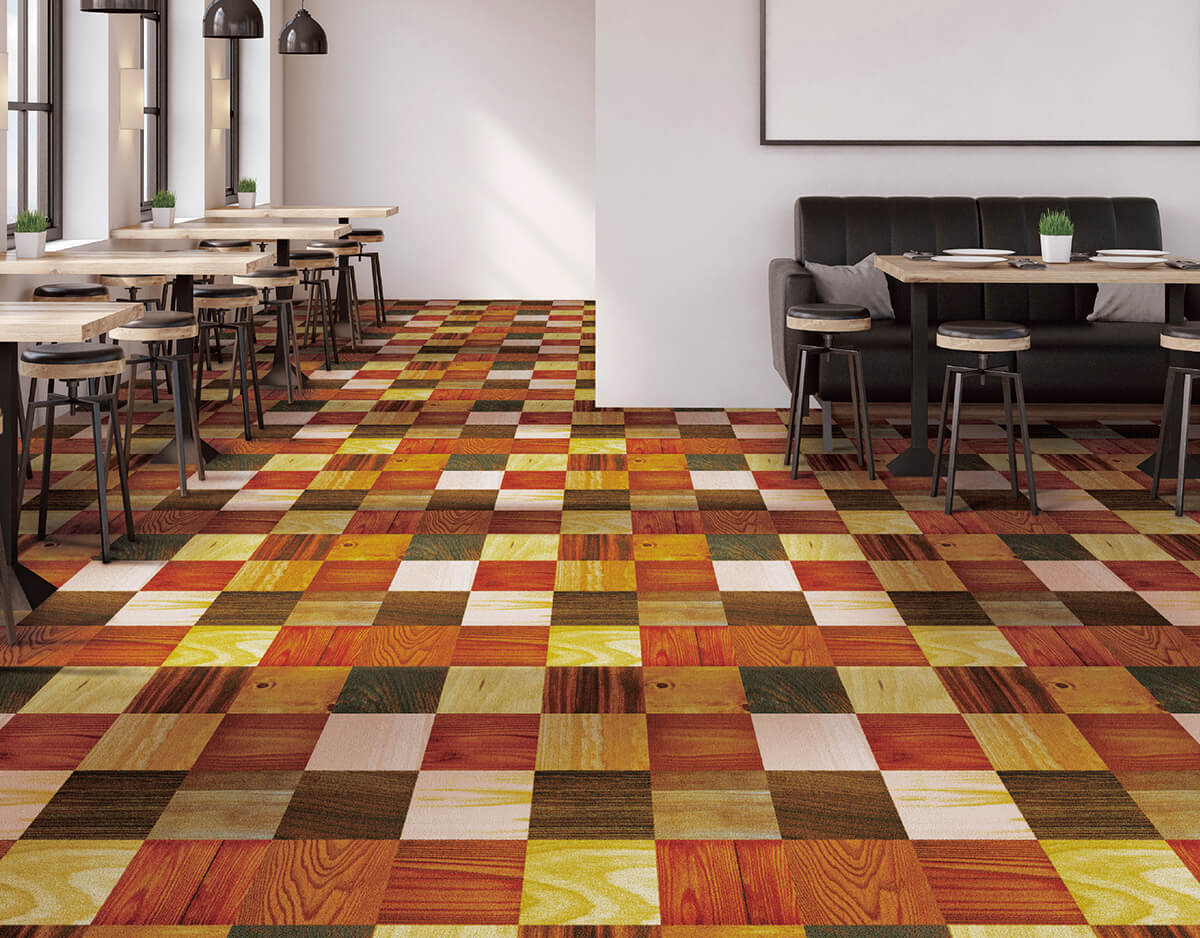 Incorporate natural materials such as flower, wood, stone, etc. into your carpet. Although large and impressive, the flower/ivy pattern can express the natural beauty. The concept for wood/stone pattern is "floor" where you can play and lie down. The natural materials and the carpet texture creates the warmth in the space and directs the comfortableness at office, hotel, commercial facility, restaurants and so on.