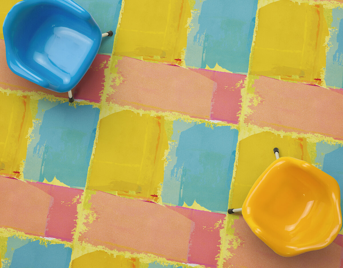"stile" takes full advantage of the great color as a characteristic of the textile printing. Large pattern available with vivid 3D designs and arrangeable with your preferred color. Block and paint design brings "allowance" to the space. The vividness and fun a color has is expressed. It creates a colorful space like no other.
